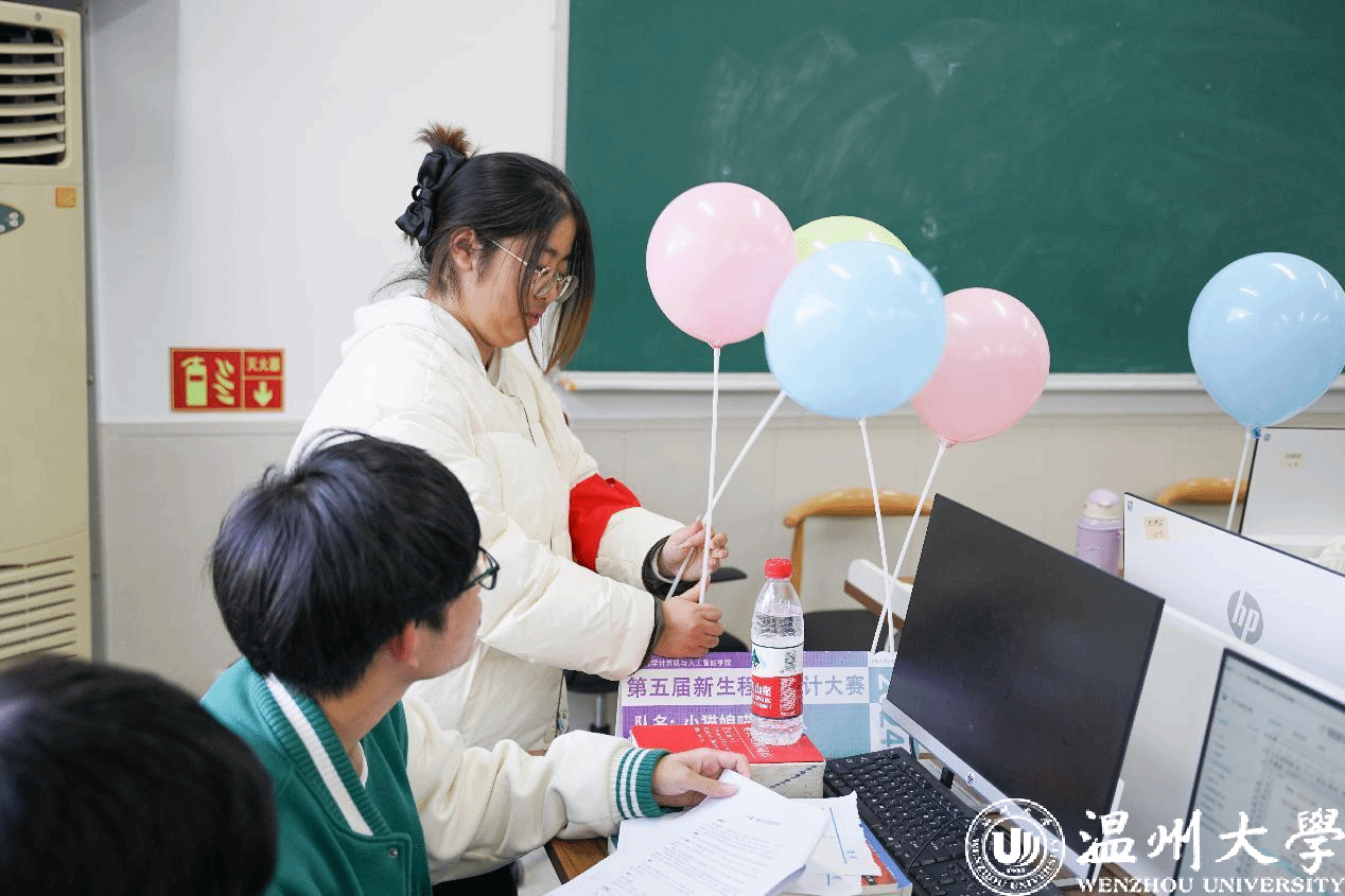 比赛现场战况焦灼,气氛热火朝天,参赛者认真思考,互帮互助,一双双神采奕奕的眼睛注视屏幕,键盘敲击声犹如打开计算机世界的大门。队员们于题海之中运筹帷幄,代码在屏幕上跃动,气球昭示着队友们的荣誉。首次通过一题的队伍由ACM老队员命题人亲自送上金色气球,这种首创做法更是吸引着大批人挑战还没有人通过的难题。经历了三个半小时的鏖战,共角逐出1支特等奖队伍,1支最佳女队,10支一等奖队伍,22支二等奖以及33支三等奖队伍。其中,由23生态莫皓翔、23大数据1班张宇濠和23人工2班毛烨超组成的“以下成绩全部无效”队荣获特等奖;由23电气1班金文清、23电气2班罗芷怡和23电气3班张涵组成的“萝萝山小分队”队获得“最佳女队”称号。获奖最多的是计算机专业:23计算机1班48人参赛,40人获奖;23计算机2班47人参赛,40人获奖,约占获奖队伍40%。