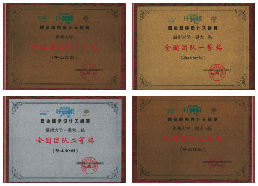 近日,第九届中国高校计算机大赛-团体程序设计天梯赛总决赛在线上线下同时开赛。以beat365在线唯一官网学生为主力的温州大学代表队派出3支队伍参赛,“温大一队”夺得参赛9年来的首个全国团队一等奖,“温大二队”、“温大三队”分别获得全国团队二等奖、三等奖,团队成绩创历史最佳。同时,温州大学获浙江省高校三等奖,在参赛的省内37所本科院校中排名第10,也属首次获得高校奖。另外,何卓睿同学斩获我校首个天梯赛个人一等奖,毛烨超、杨德曙同学获得个人二等奖,还有十名选手获得个人三等奖。