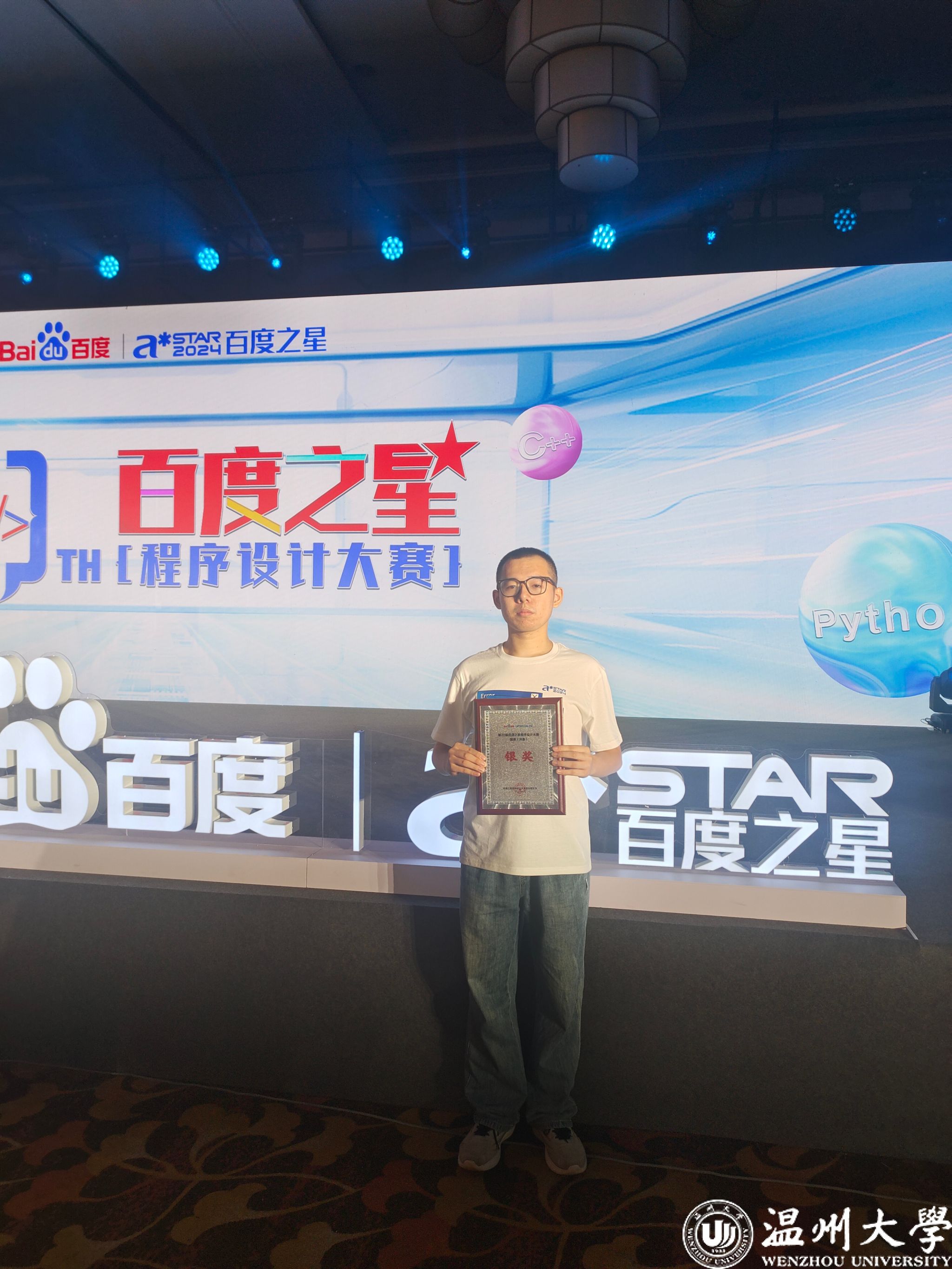 2024年8月18日,被称为“技术界奥斯卡”的2024百度之星程序设计大赛总决赛在北京九华山庄举行,经过5小时的激烈竞争,beat365在线唯一官网人工智能专业学生何卓睿同学斩获全国总决赛银奖。在6月份的三轮初赛中,何卓睿同学获得省赛金奖,另有6名同学(陈宇锋、毛烨超、管羽、盛飞扬、章佳辉、李家诚)获得省赛铜奖,实现了我校历年参加该赛事的最佳成绩,也是温州地区参赛高校的最好成绩!