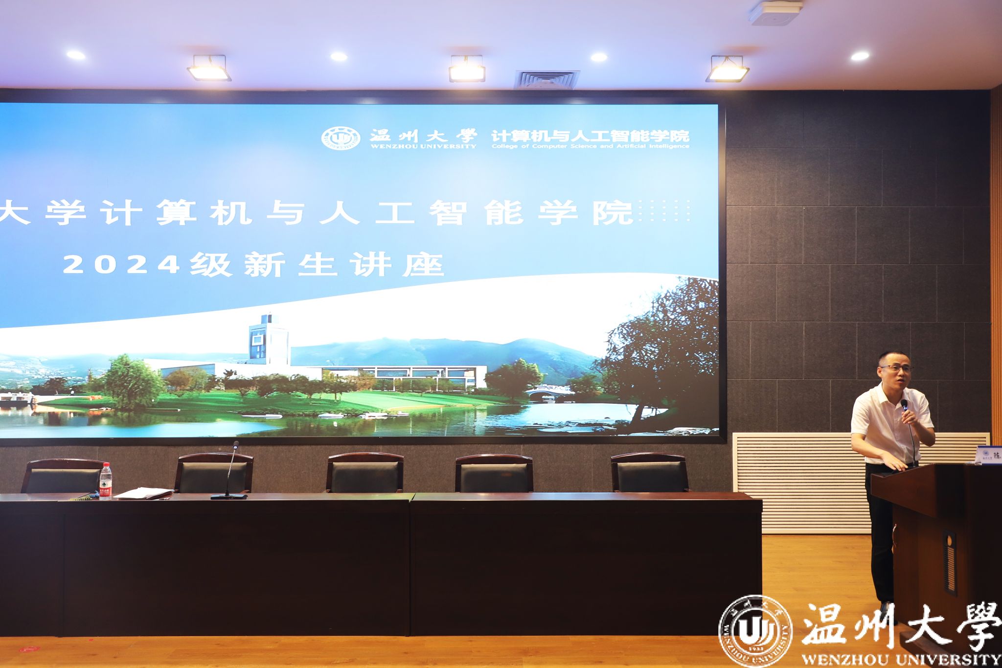陈昂教授介绍了迎新活动中由元宇宙研究院开发的“元萝卜”下棋机器人、3D打印模型和大语言沟通模型,强烈激发了新生们对于计算机专业的浓厚兴趣,并结合自身国内外的求学经验,给24级新生提出了几点希望:一、热爱计算机行业,计算机专业具有非常好的就业前景,是顺应时代和社会发展需求的专业,同学们要保持良好的心态,刻苦钻研终能学有所成;二、培育团队工作能力,人工智能等高新技术的发展更多的是需要团队的合作和联系,同学们要不断地提升自身沟通和协调能力,让自己的专业知识更好地与社会发展相结合;三、要找到大学的意义,大学与高中存在本质的不同,希望同学们能快速转变学习方式,从老师教授的被动学习转变为独立探索的自主学习,有效地通过网络信息、社会实践、企业实习等方式获取更多的知识和技能,实现个人的成长。最后,陈昂教授表示,希望24级新生能够找到自身的理想和目标,不畏困难、奋勇争先,快乐且幸福地度过大学时光。