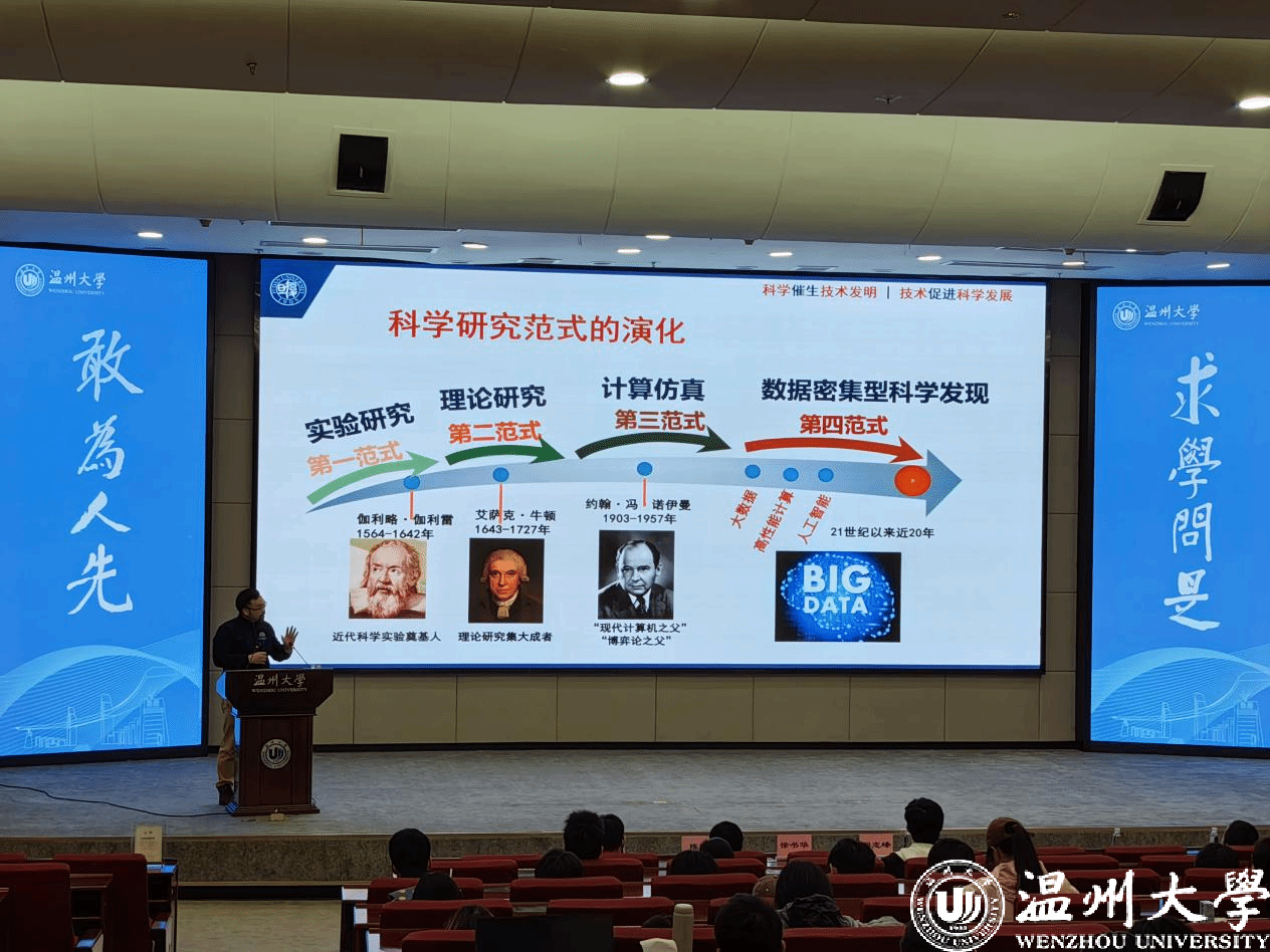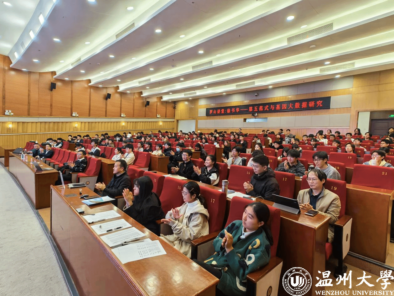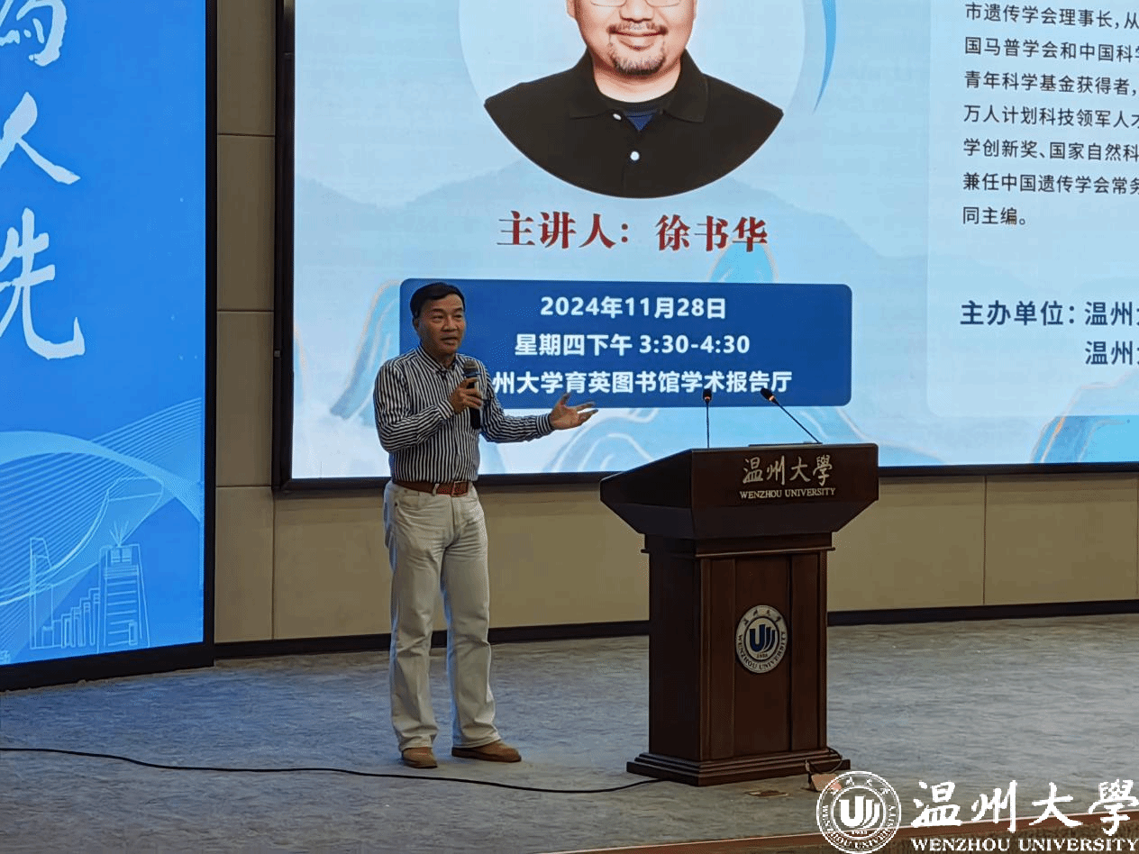 2024年11月28日下午,复旦大学特聘教授、复旦大学进化生物学中心主任、上海市遗传学会理事长徐书华教授,受邀莅临温州大学罗山讲堂,于育英图书馆报告厅以“第五范式与基因大数据研究”为题,展开了一场精彩的学术讲座。出席本次讲座的嘉宾有图书馆副馆长周志峰、计算机学院陈恒教授和多名骨干教师,此次讲座由陈恒教授主持,吸引了百余名温州大学师生前来聆听。