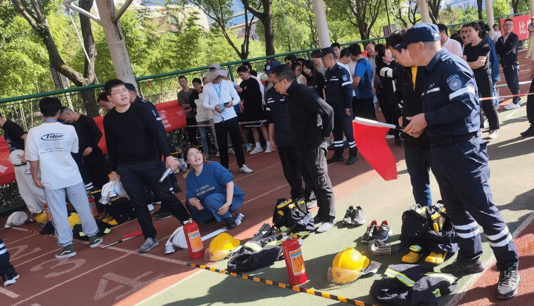 为增强学院教师的消防安全意识,增强应对火灾等突发事件处置能力,学院开展了消防演练活动。学院教师分批体验灭火器使用过程,熟悉“一提、二拔、三握、四压”的操作步骤,提高应急处置能力。