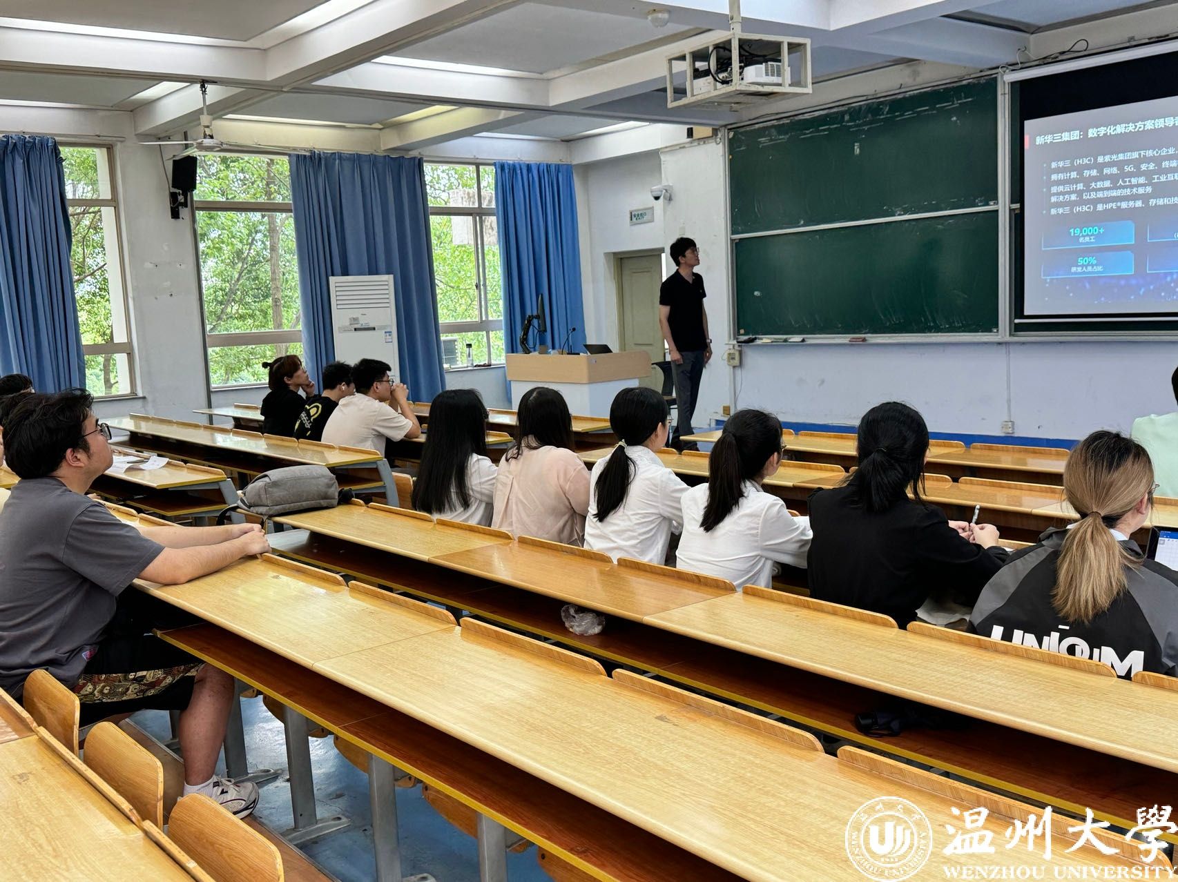 5月23日,新华三集团在beat365在线唯一官网开展线下宣讲会,主要介绍了新华三的实习岗位以及后续发展,并开展了现场招聘活动。