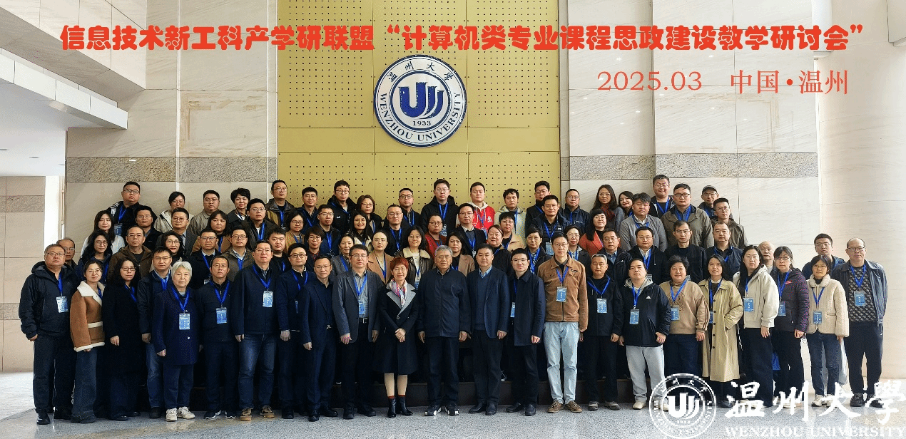 2025年3月29日,由信息技术新工科产学研联盟主办、我校承办的“首届计算机类专业课程思政建设”教学研讨会在温州大学成功召开。本次会议以“落实产出导向,深化课程思政,促进计算机类人才培养立德树人”为主题,吸引了来自全国45所高校的近百位专家学者齐聚一堂,共商计算机类专业课程思政建设大计。