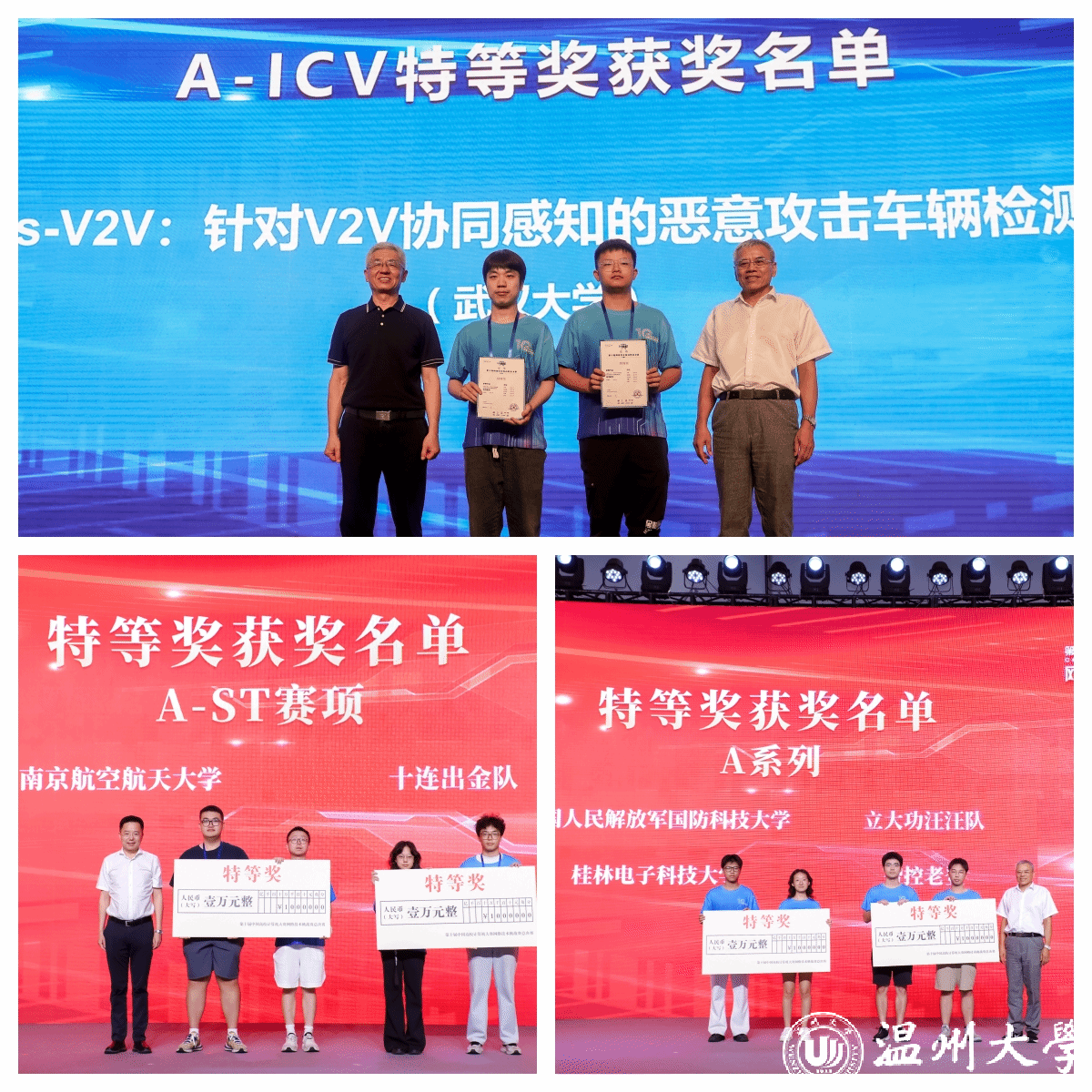 作为大赛与地方产业深度融合的赛项,A-ICV赛道的颁奖典礼特别安排在“2025世界青年科学家峰会第三届智能交通网联与车联网永嘉活动”上举行,北京交通大学的张宏科教授与中国高校计算机大赛组委会主任蒋宗礼教授一起为获得特等奖的队伍颁发了奖状,彰显了赛事成果与前沿峰会的紧密联动。