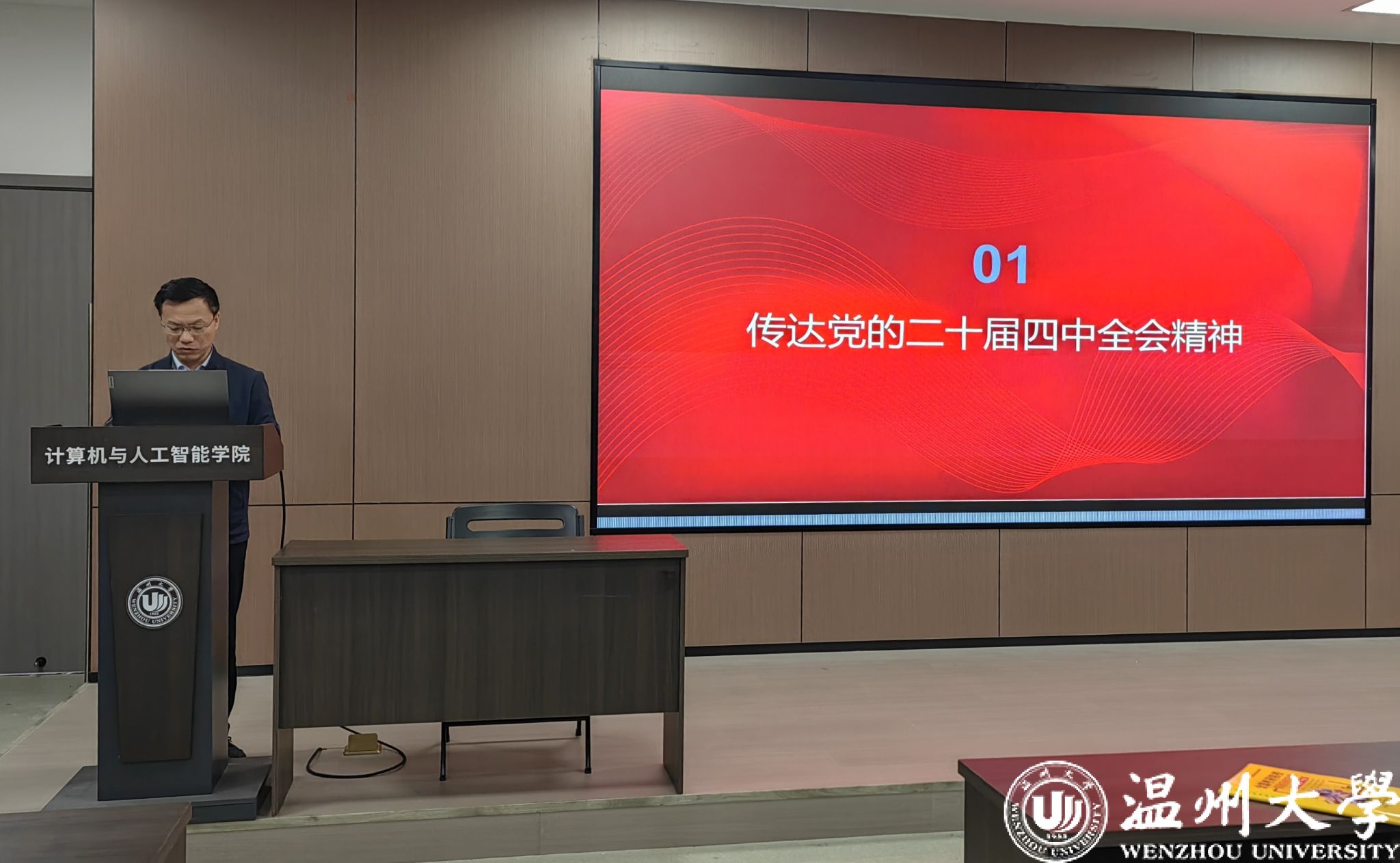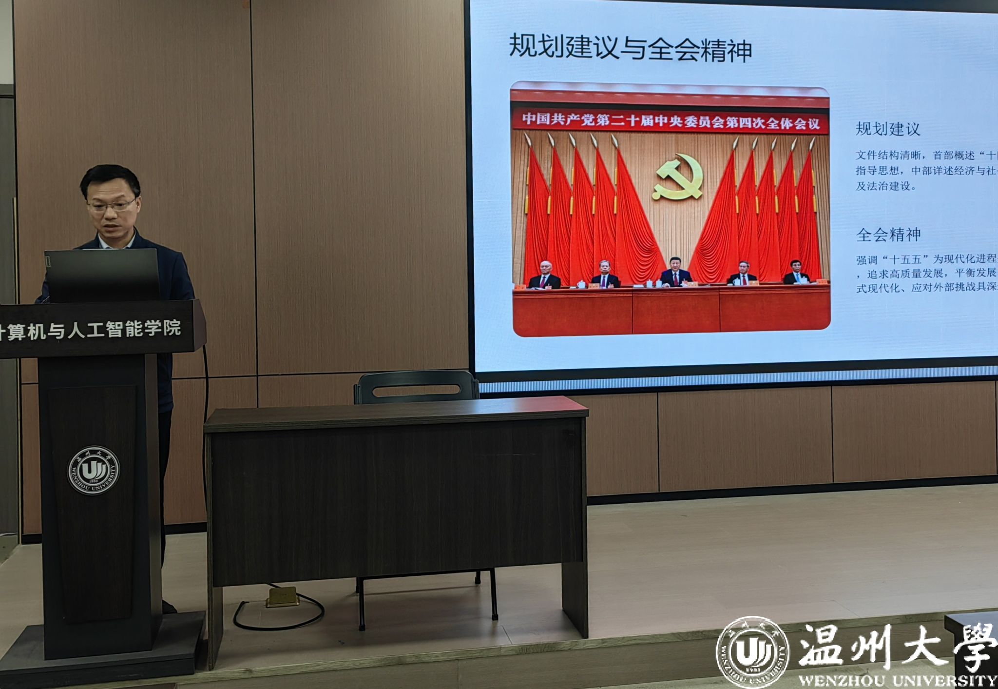 结合学院工作实际,全力书记从三个维度对全会精神进行了深入解读。在强化科技创新与产业支撑方面,他强调,计算机学科作为战略性领域,学院作为浙江省重点学科建设单位,要聚焦人工智能、大数据、网络安全等前沿方向,加强原创性科研攻关,推动科教融合与成果转化,主动服务现代化产业体系建设。在融入 “十五五” 规划全局方面,学院将对标全会部署,修订完善自身发展规划,突出党建引领与思政教育的核心作用,助力学校高水平大学建设。在践行以人民为中心的发展思想方面,全院教职工要立足教育本职,优化教学资源配置,着力解决学生“急难愁盼”问题,打造高情商、高技能的师资队伍,办好人民满意的教育。