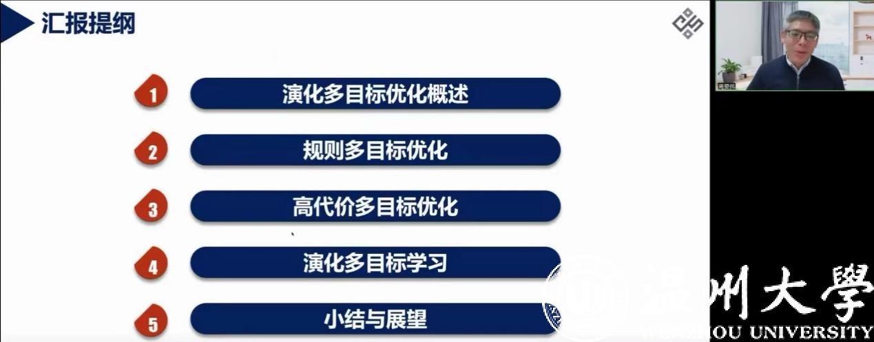 讲座以多目标优化为主题,从演化多目标优化概述、规则多目标优化、高代价多目标优化,及演化多目标学习4个方面对其整体背景和思路进行了详细介绍。