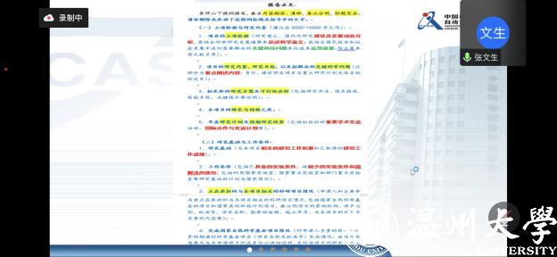 从国家自然科学基金的设立背景出发,讲座上,张教授首先简要地介绍了国自然项目的项目资助类别及申请条件,使与会师生对国自然项目有了初步了解。随后,张教授就“如何成功申请到第一个国家自然科学基金”这一题目展开,详细地介绍了项目申请的时间节点、选题依据、科学问题、研究内容、创新之处等方面内容。此外,张教授还从评审专家的角度出发同大家分析如何才能获得更高的评审分数。最后,张教授以一份成功的项目申请书为例,逐条介绍了撰写项目书时的要点事项。