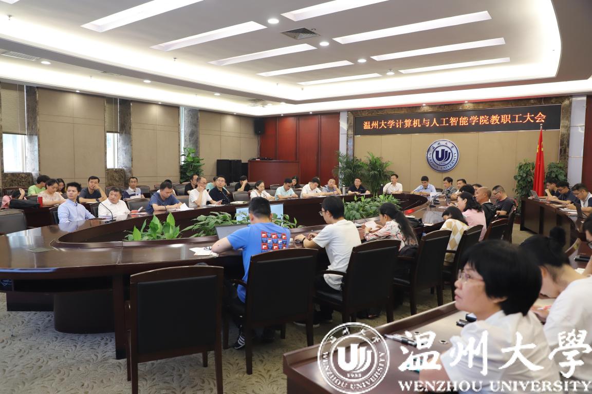 6月30日下午,学院在温州大学南校区岩松堂白鹿厅召开全院教职工大会。会议由学院党委书记全力主持,全体教职工参加了会议。