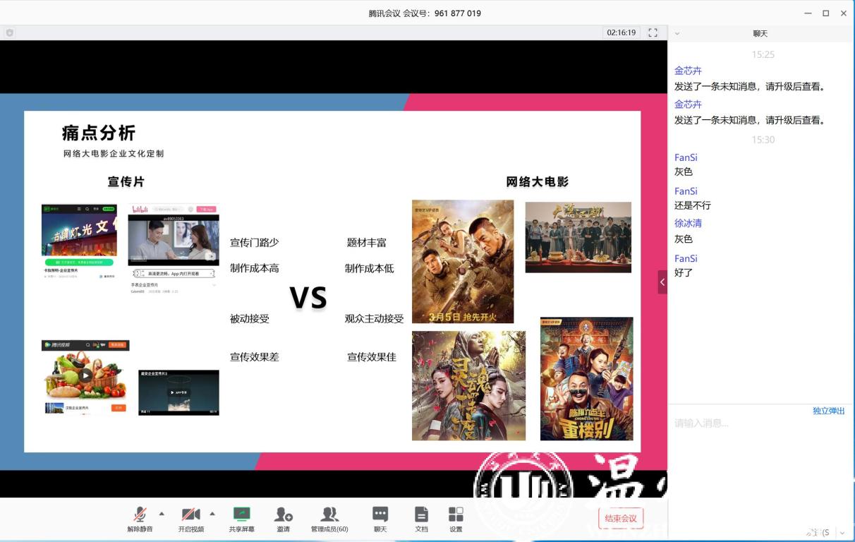 3月15日下午,学院2020年 “互联网+”大学生创新创业大赛第二批路演在线上平台腾讯会议上顺利举行。参加会议的有学院党委书记全力、副院长黄辉、副书记陈志勇、项目指导老师、学工办辅导员以及各项目组成员等,会议由辅导员叶成良主持。