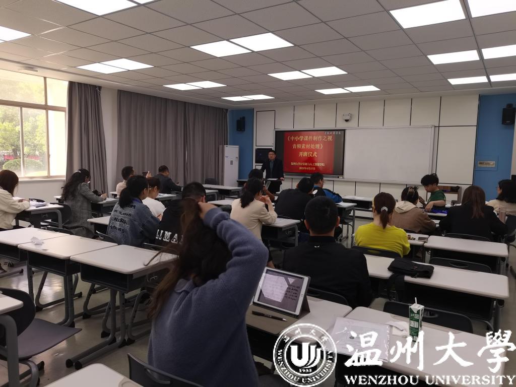 4月17日上午,beat365在线唯一官网在5A103举办浙江省中小学教师专业发展集中培训班——中小学课件制作之视音频素材处理第一期培训班开班仪式。学院副院长黄辉、培训事业部负责人张长胜、主讲教师周艳出席了此次开班仪式。