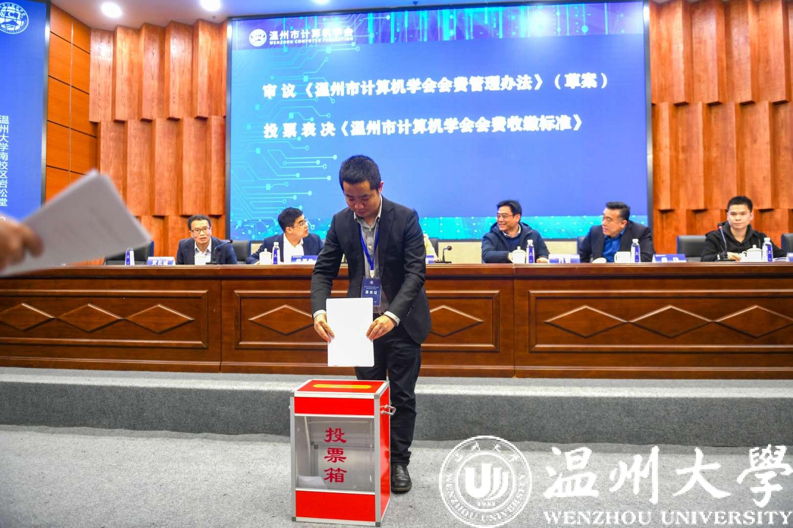 会议期间,全体会员代表听取并审议通过了《温州市计算机学会章程》(草案)《温州市计算机学会会费管理办法》(草案)《温州市计算机学会选举办法》(草案),选举产生温州市计算机学会第一届理事会52位理事和第一届监事会3位监事。