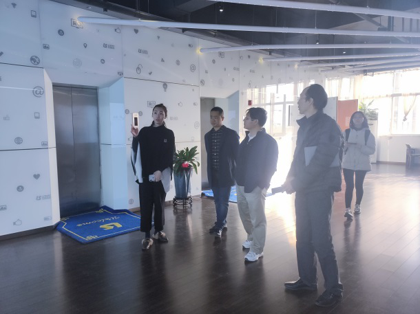 接着,研究院一行又到了浙江国技互联信息技术有限公司。技术研发中心总监吴江卿和信息化中心总监马宇远热情的接待,详细介绍了公司历史与荣誉以及企业文化,并基于大数据平台展示了温州整个区域人口的分布情况,内容新颖,技术先进。交流会上,吴总监表示,在企业技术研发和创新上要依靠专业和权威的高端人才,希望今后研究院能予以一些合作和支持。洪振杰院长介绍了研究院情况,肯定了国技互联的研发能力,提出在研发方向合作的可能性,希望在双方的共同努力下实现双赢。