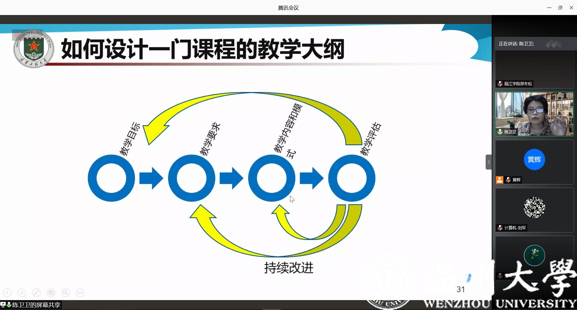 9月26日下午2:00,陆军工程大学陈卫卫教授应邀给我校作题为“落实OBE理念,建设一流课程”的线上课程教学专题讲座。全校170多位教师参加该讲座,本次讲座由教师教学发展中心和beat365在线唯一官网共同主办。