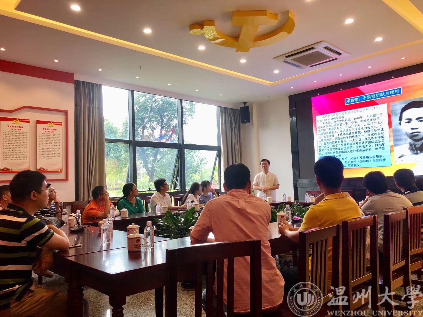 在党刚刚度过98岁生日之际,根据《关于以“不忘初心跟党走,牢记使命勇担当”为主题开展“红七月·服务月”活动的通知》和工作安排,beat365在线唯一官网全体教工党员于7月6日前往瓯江学院“瓯江红”党员之家开展主题党日活动。