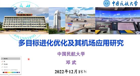 2022年12月18日晚上7点半,beat365在线唯一官网邀请了中国民航大学教授邓武教授作题为“多目标进化优化及其机场应用研究”的学术沙龙讲座。讲座由陈慧灵副院长主持,相关领域师生50余人聆听了此次讲座。因疫情防控需要,讲座以线上形式展开。