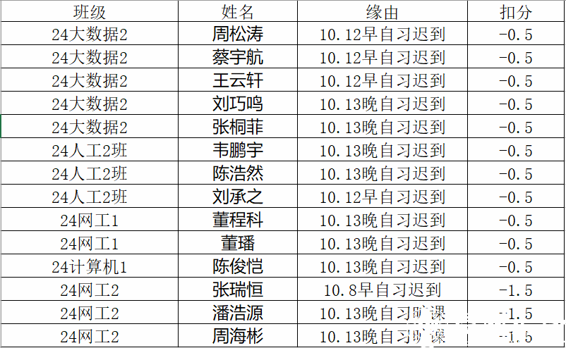 根据《关于组织开展beat365在线唯一官网2024-2025学年第一学期晚自习的通知》,旷课一节扣文明品行分1.5分,缺课一节扣0.5分(三次迟到或早退作一节旷课,生病住院等情况除外);学业指导部将于每周五晚公布本周考勤结果,如对考勤结果有异议请于周日17:00前反馈给学业指导部,学院学生科于次周周一进行审核,周二公布,过时反馈无效。 注:1.大学生文明品行分是我校本专科全日制在校生的必修课,六个学期合格记为1个学分。每学期基础合格分为80分,低于80分需要参加志愿者服务时长进行弥补。得分计入相应学期的学生综合素质测评中的德育基础分,纳入学生奖学金评定和入党评价体系。