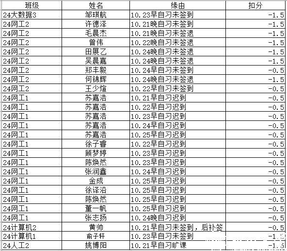 根据《关于组织开展beat365在线唯一官网2024-2025学年第一学期晚自习的通知》,旷课一节扣文明品行分1.5分,缺课一节扣0.5分(三次迟到或早退作一节旷课,生病住院等情况除外);如对考勤结果有异议请于周日17:00前反馈给学业指导部,学院学生科于次周周一进行审核,周二公布,过时反馈无效。 注:1.大学生文明品行分是我校本专科全日制在校生的必修课,六个学期合格记为1个学分。每学期基础合格分为80分,低于80分需要参加志愿者服务时长进行弥补。得分计入相应学期的学生综合素质测评中的德育基础分,纳入学生奖学金评定和入党评价体系。