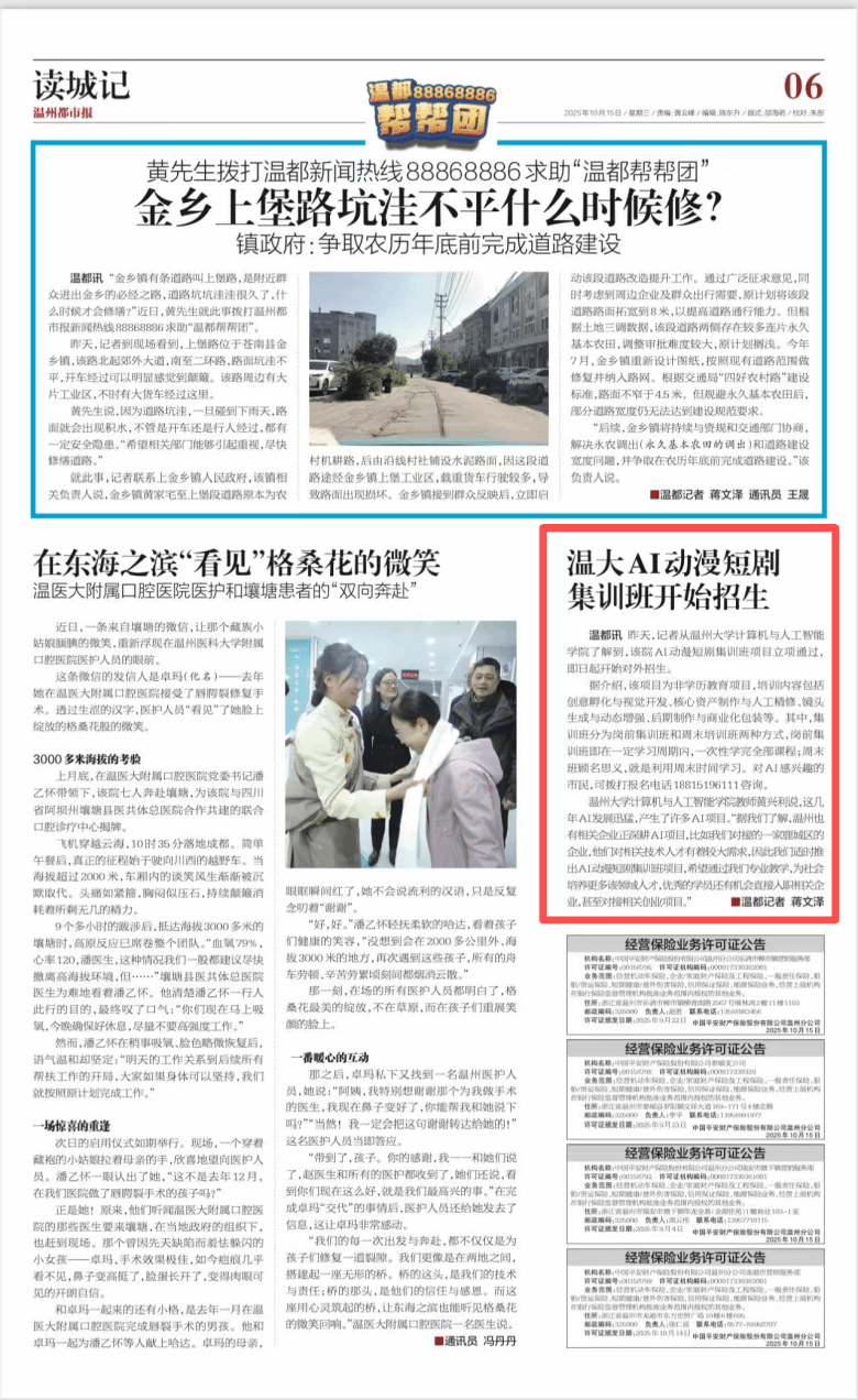 beat365在线唯一官网教师黄兴利说,这几年AI发展迅猛,产生了许多AI项目。“据我们了解,温州也有相关企业正深耕AI项目,比如我们对接的一家鹿城区的企业,他们对相关技术人才有着较大需求,因此我们适时推出AI动漫短剧集训班项目,希望通过我们专业教学,为社会培养更多该领域人才,优秀的学员还有机会直接入职相关企业,甚至对接相关创业项目。”