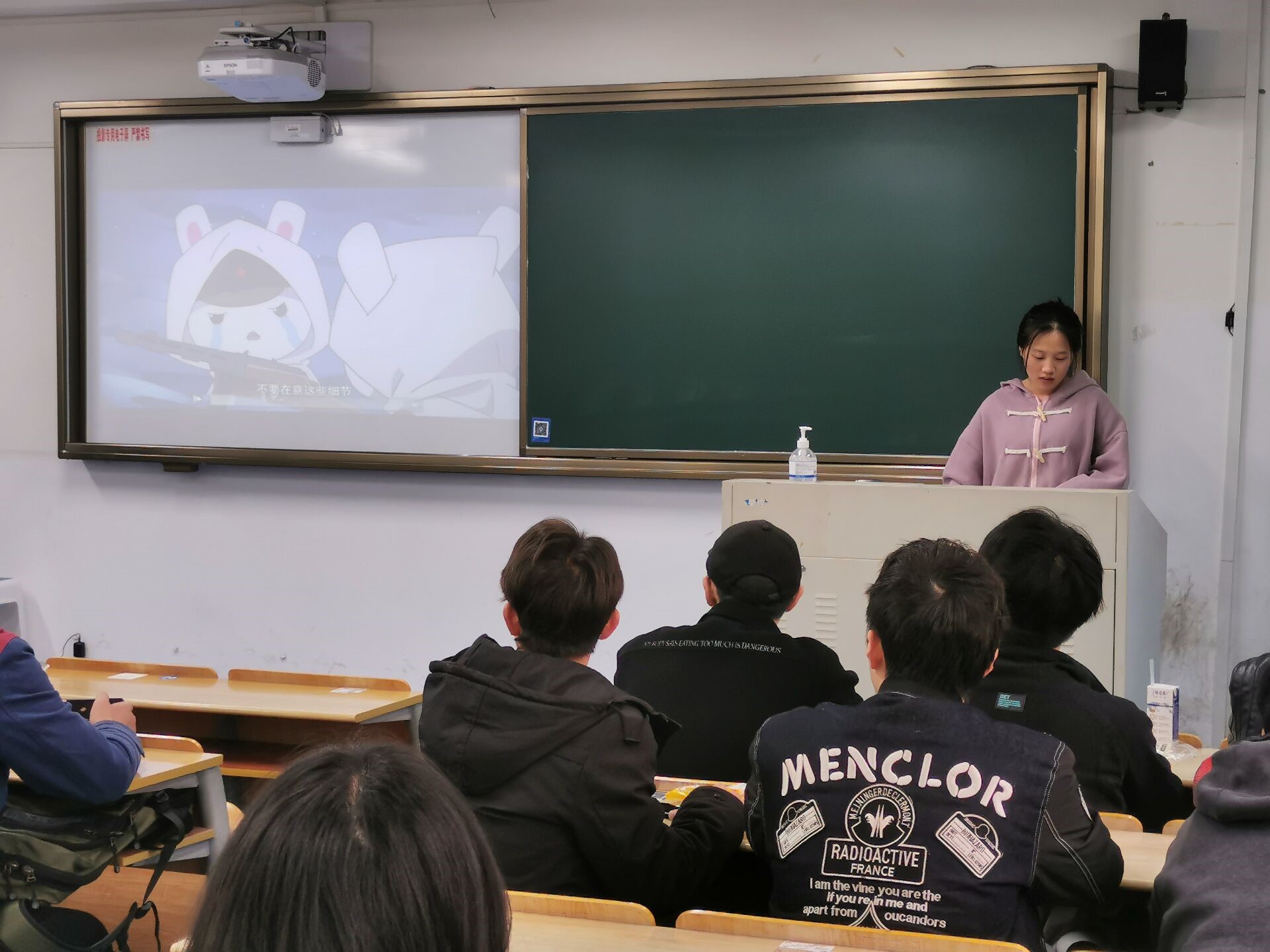 王思思同学从党史出发,以一场“虽败犹荣”的淞沪会战为根本,抛出“这场战役是否值得”的疑问,同学们在短暂的沉思后积极发表看法,提出了不少富有见地的想法。最后,她鼓励同学们“立足本职、思想端正、生活积极、学习认真。”