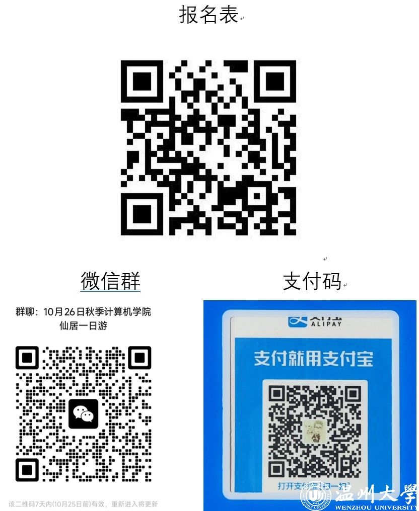 四、报名办法:扫一扫下面“报名表”图片二维码,填写相关信息,后再扫码进入微信群,进群后缴纳报名费50/人(请备注姓名),报名以缴费为准。已报名者如因工作原因不能参加活动,请在1024日(周四)前告知工会,报名费可全额退还。